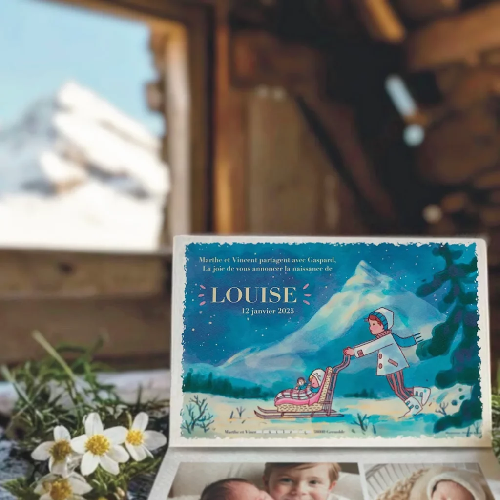 ❄️- Un bébé dans la neige puisque le faire-part devait être envoyé au moment de Noël (je dis bien « devait »…je suis encore en plein dedans… mais ça va, il neige encore)